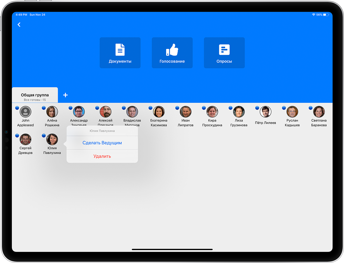 Каждый участник буквально держит в руках слайд. Интуитивно